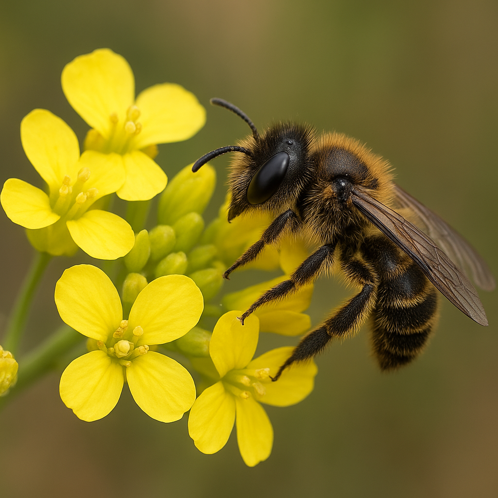 • Colletes succinctus – zwana pszczołą glinianką, budująca gniazda w ziemi.