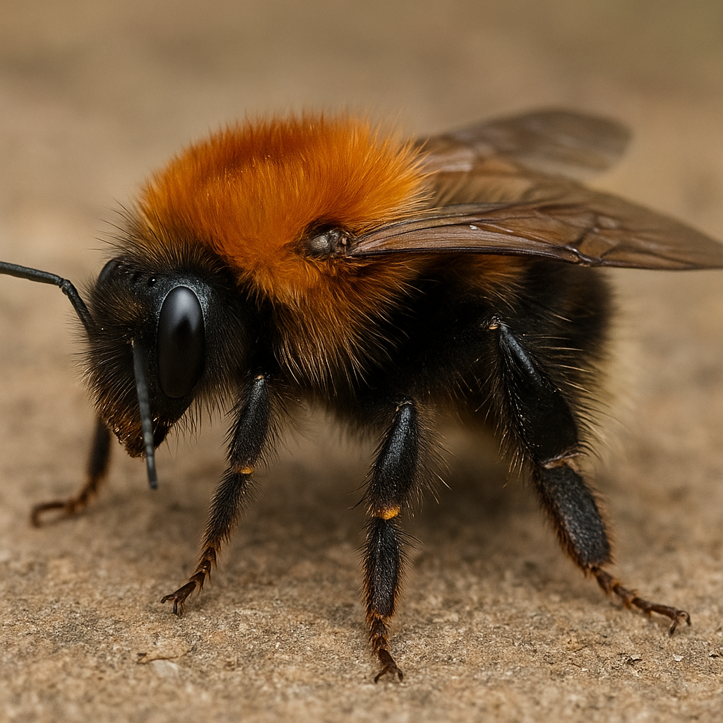 - Umaszczenie: najbardziej charakterystyczne jest rdzawo-brązowe (rufous) ubarwienie tułowia i odwłoka. Czasami obecne są żółte pasy na przednich segmentach tułowia lub odwłoku, szczególnie u niektórych samców. Włoski bywają różnej długości i gęstości, nadając zwierzęciu puszysty wygląd.