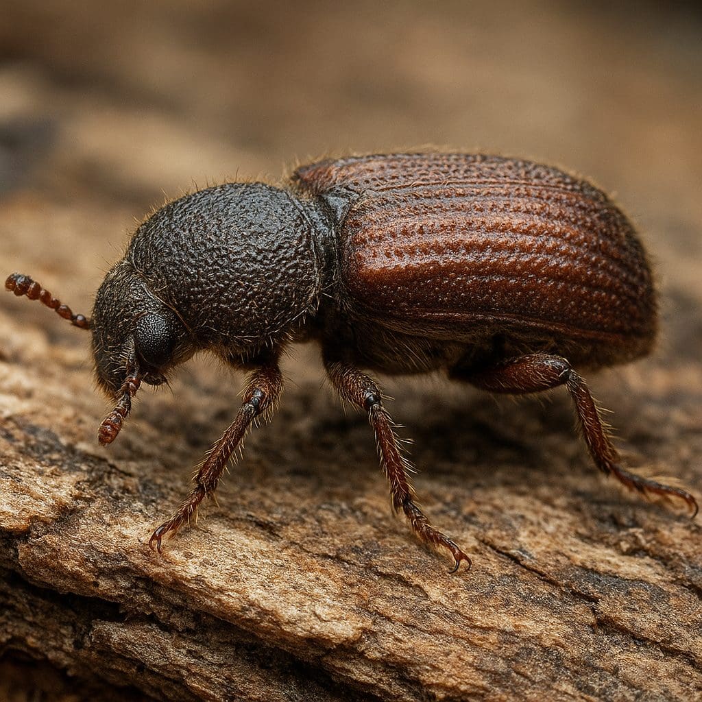 - Pokrywy (elytra) z wyraźną tylno-boczną częścią (tzw. declivity), na której znajdują się ząbki i listewki — to cecha pomocna w identyfikacji.