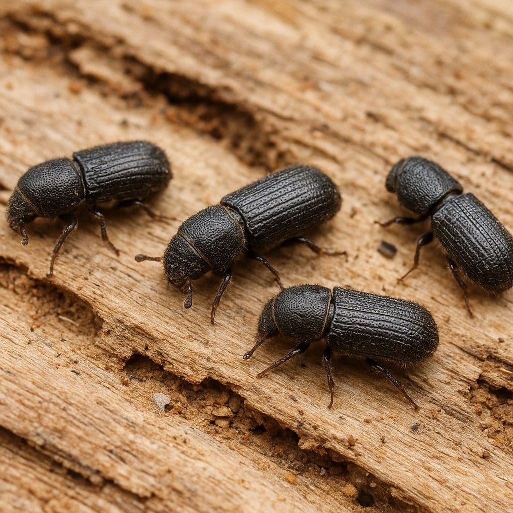 - Drapieżne chrząszcze, np. z rodziny Cleridae (np. Thanasimus spp.), które polują na dorosłe osobniki i larwy pod korą.