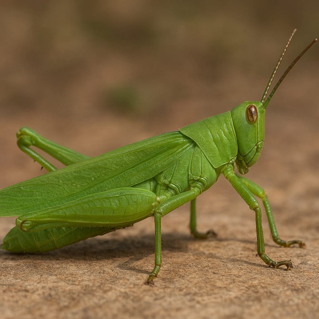 - Głowa o stosunkowo krótkich czułkach (cecha typowa dla Caelifera), z oczami złożonymi dobrze rozwiniętymi.