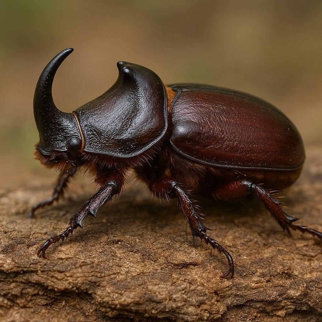 - Wyraźny dimorfizm płciowy — róg u samców nie tylko służy do walk, lecz także może odgrywać rolę w rozpoznawaniu międzygatunkowym i przyciąganiu partnerów.