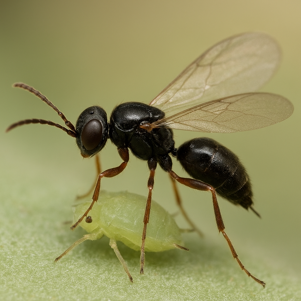 • Endosymbionty: niektóre bakterie endosymbiotyczne obecne w mszycach (np. Hamiltonella defensa) znacząco zmniejszają skuteczność parasytowania przez A. ervi, neutralizując larwy pasożyta lub wzmacniając odporność gospodarza.