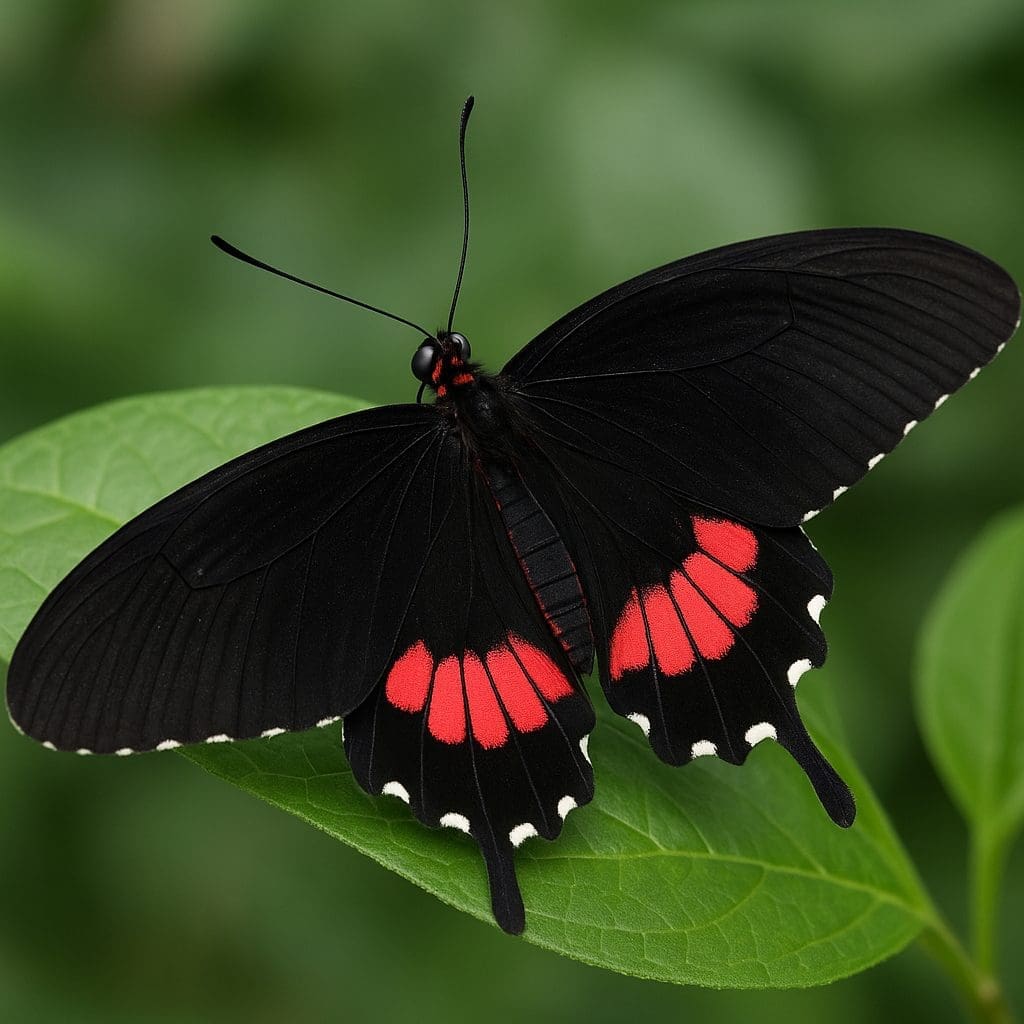 Kontrast między ciemnym tłem a czerwonymi plamami ma znaczenie ostrzegawcze — sygnalizuje drapieżnikom, że motyl może być toksyczny lub nieprzyjemny w smaku.