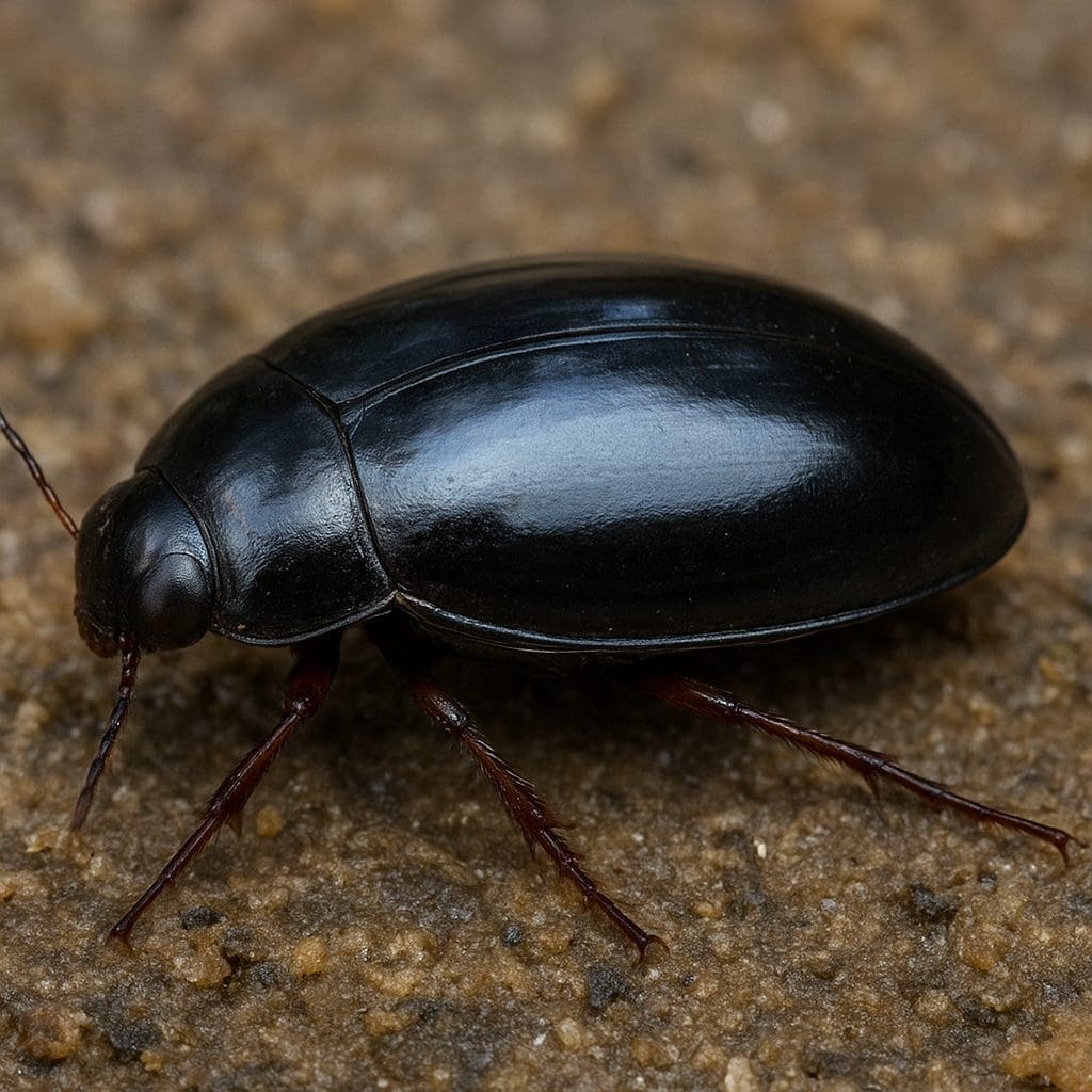- Porównaj rozmiary i kształt z innymi krętakami: Gyrinus paykulli jest mały, o silnym połysku elytrów.