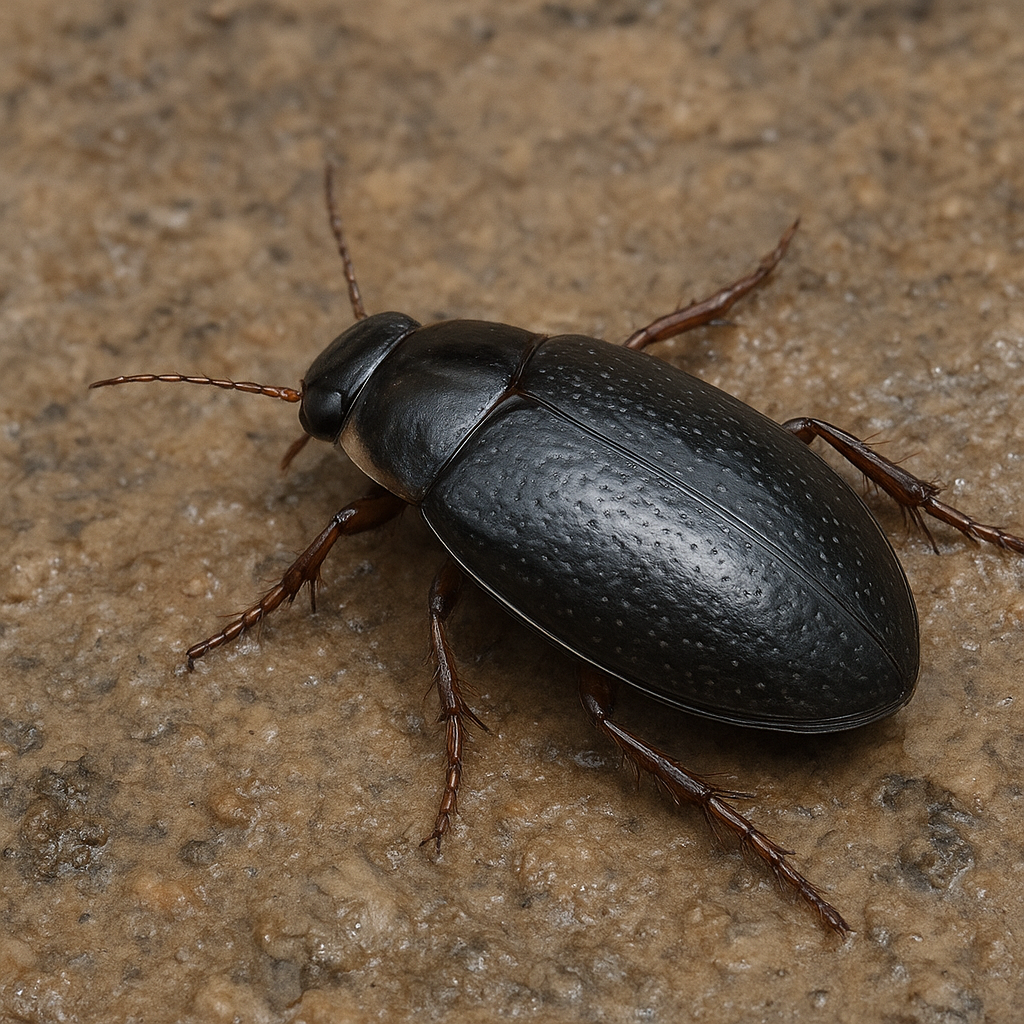 - Elytra (pokrywy skrzydeł) — gładkie, błyszczące, często o ciemnym, metalicznym połysku (czarne, brunatno-czarne lub z odcieniem bronzu), u niektórych okazów widoczne drobne punktowania i słabe linie; elytra są szczelne i zabezpieczają ciało przed zamoczeniem.