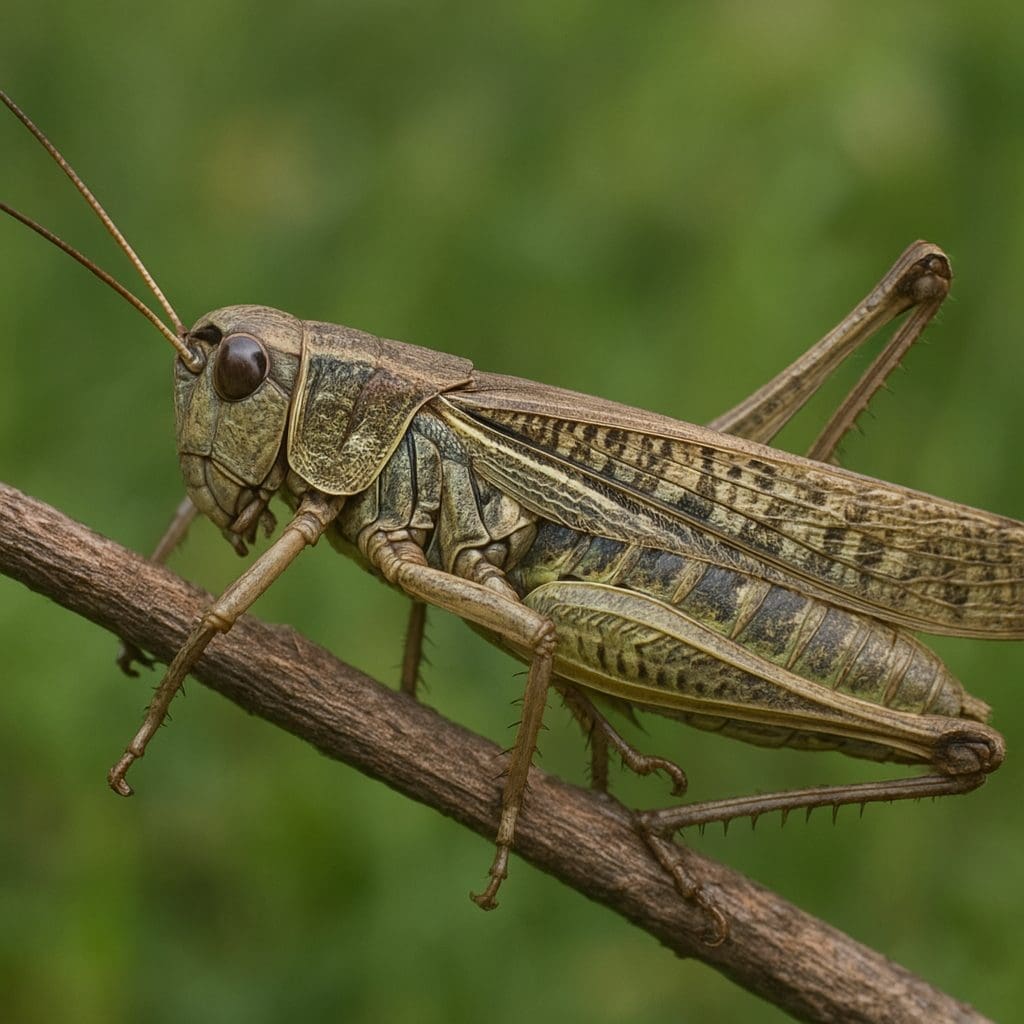 • Skrzydła przednie (tegmina) u dorosłych są zazwyczaj dobrze rozwinięte i pokrywają część grzbietu; forma lotna potrafi unikać krótkich lotów, choć gatunek jest lepszym skoczkiem niż lotnikiem.