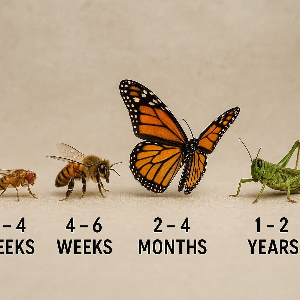 Różnorodność długości życia można zobrazować na przykładzie kilku grup owadów: