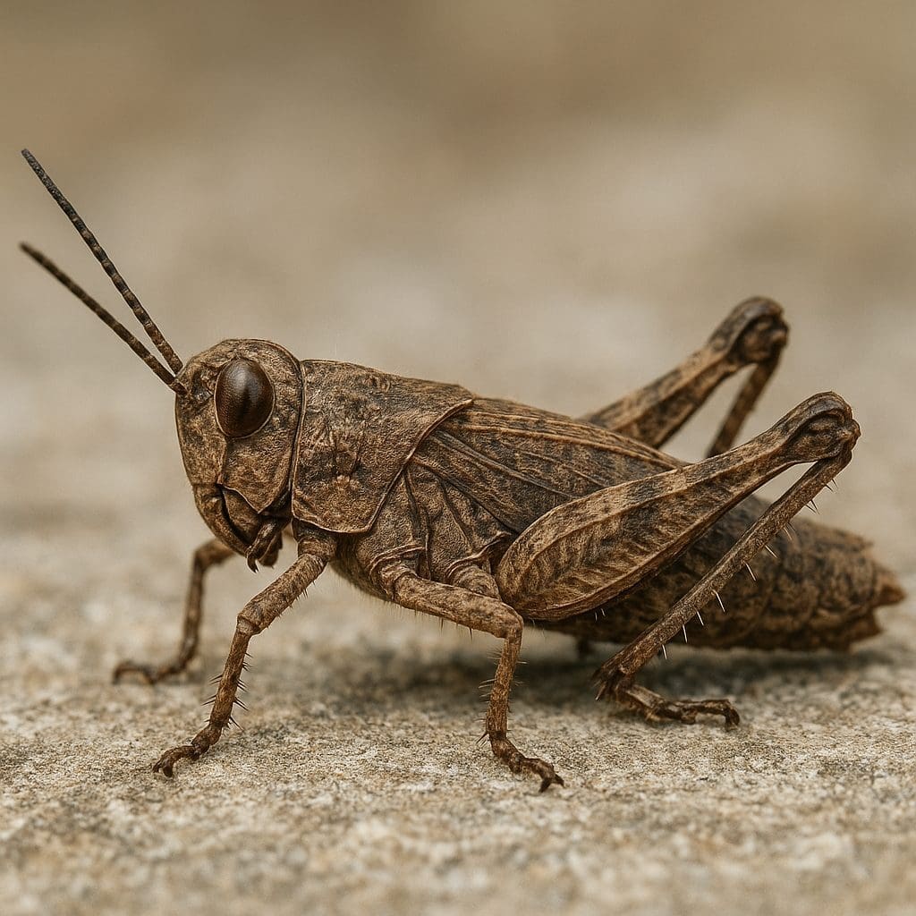 Umaszczenie jest silnie zmienne i przystosowane do kamuflażu: dominują barwy od szaro-brązowych przez oliwkowe, aż po rdzawo-czarne, z często występującymi plamami, smugami lub rysunkami przypominającymi liście, porosty i mchy. Dzięki temu owad doskonale wtapia się w podłoże kamieniste, piaskowe brunatne muły czy porośnięte mchem powierzchnie. Czułki są cienkie i stosunkowo krótkie, odnóża skokowe umięśnione, przystosowane do wykonywania natychmiastowych skoków w reakcji na zagrożenie.