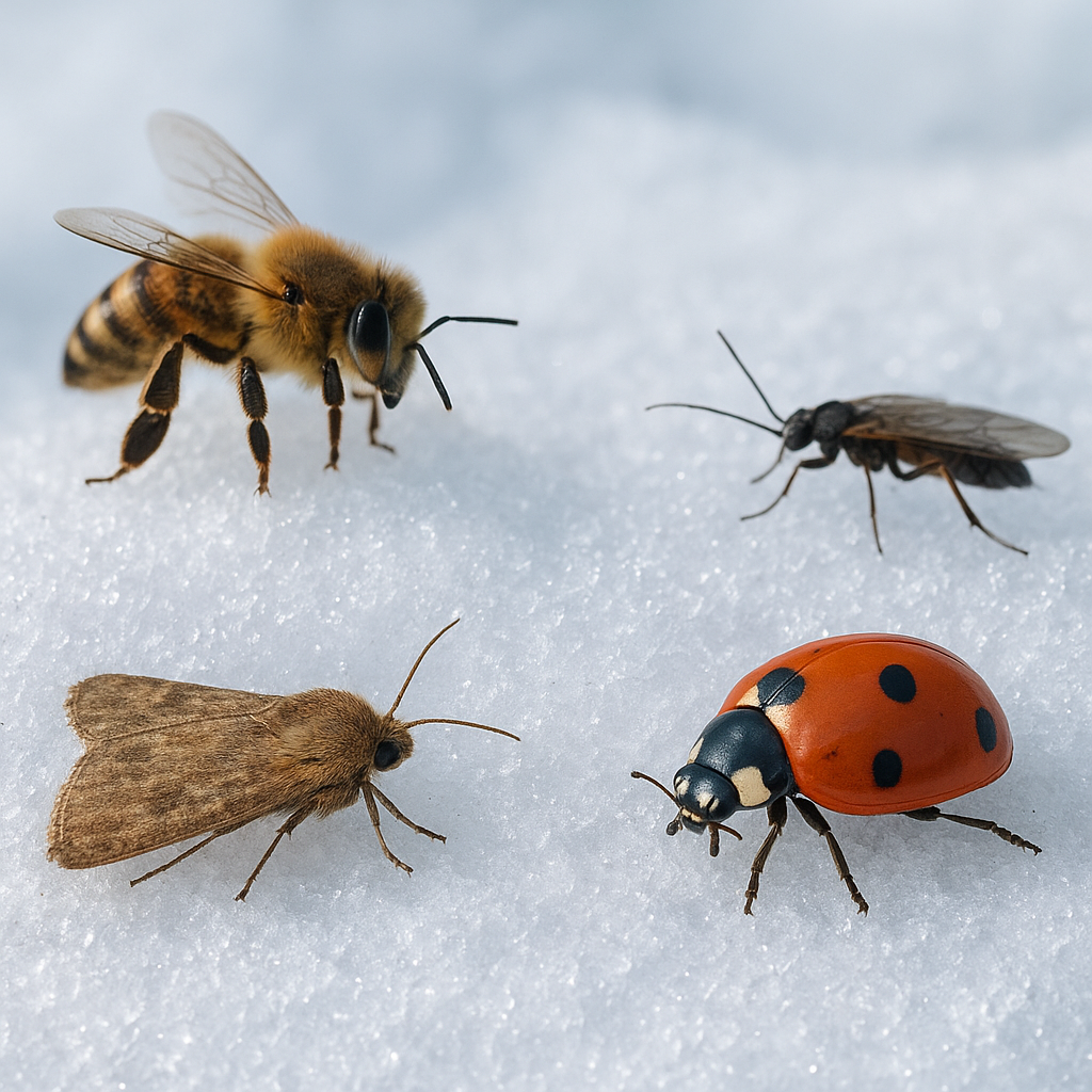 Chociaż większość owadów ginie lub przeobraża się w jaja, larwy bądź poczwarki, niektóre gatunki pozostają aktywne lub gotowe do wybudzenia tuż po ociepleniu. Oto lista kilku interesujących zimujących owadów: