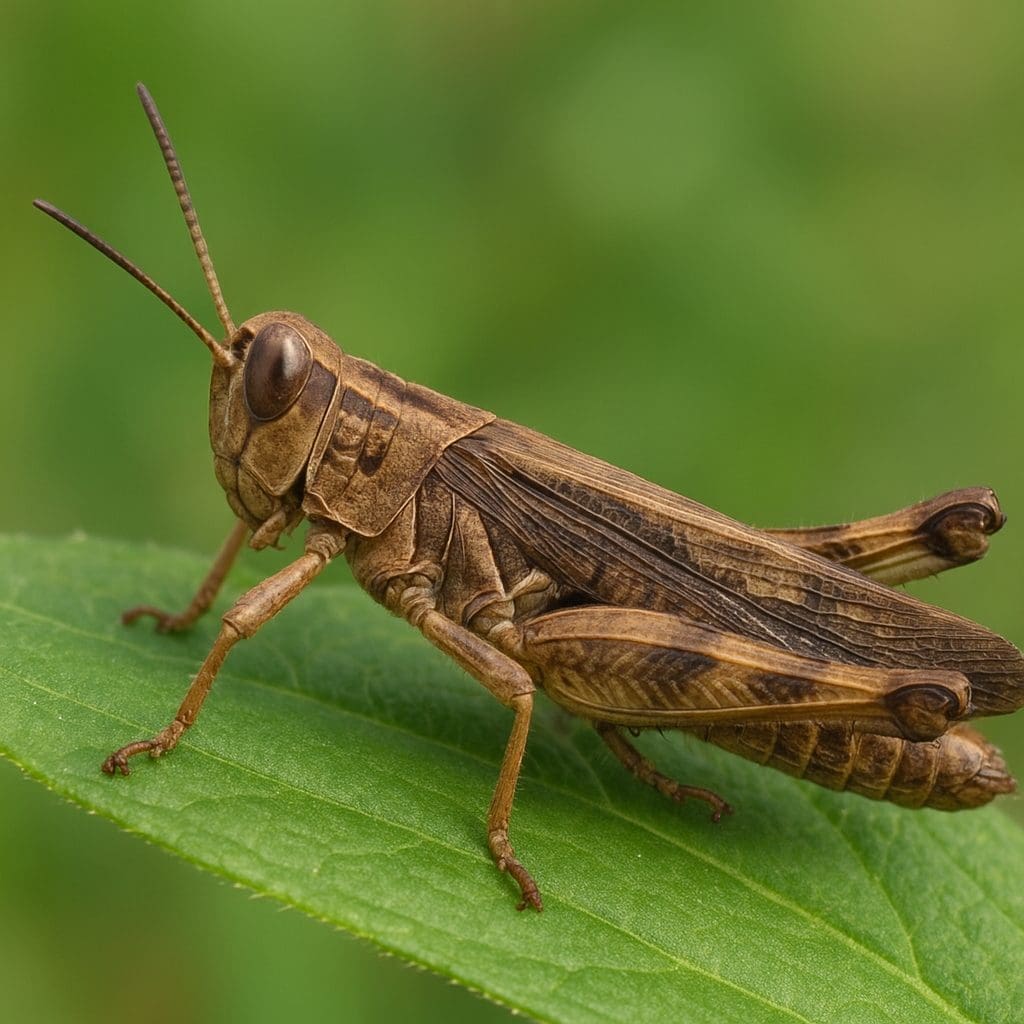 • Umaszczenie: odcienie zieleni, brązu i żółtawych tonów z wyraźnymi, ciemnymi pasami biegnącymi wzdłuż tułowia lub skrzydeł. Dzięki tej kolorystyce owad bywa dobrze maskowany wśród traw.