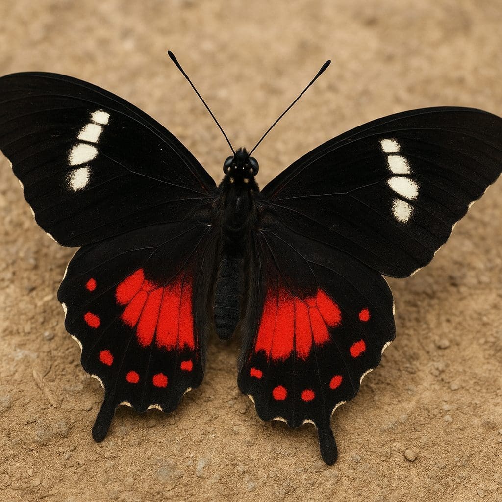 Ubarwienie jest charakterystyczne: tło skrzydeł jest zazwyczaj ciemne (czarne do brunatnego), z kontrastującymi jasnymi pasami lub plamami w odcieniach żółci lub kremu na przednich skrzydłach oraz intensywniejszymi czerwonymi lub pomarańczowymi plamami na tylnych skrzydłach. Często można obserwować jaskrawe czerwone lub różowe plamki w okolicy nasady tylnego brzegu skrzydeł, które pełnią funkcję ostrzegawczą lub odstraszającą dla potencjalnych drapieżników. Garść detali anatomicznych: głowa ze złożonymi oczami, czułkami zakończonymi buławkami, tułów z dobrze rozwiniętymi mięśniami lotnymi oraz odwłok zawierający narządy rozrodcze.