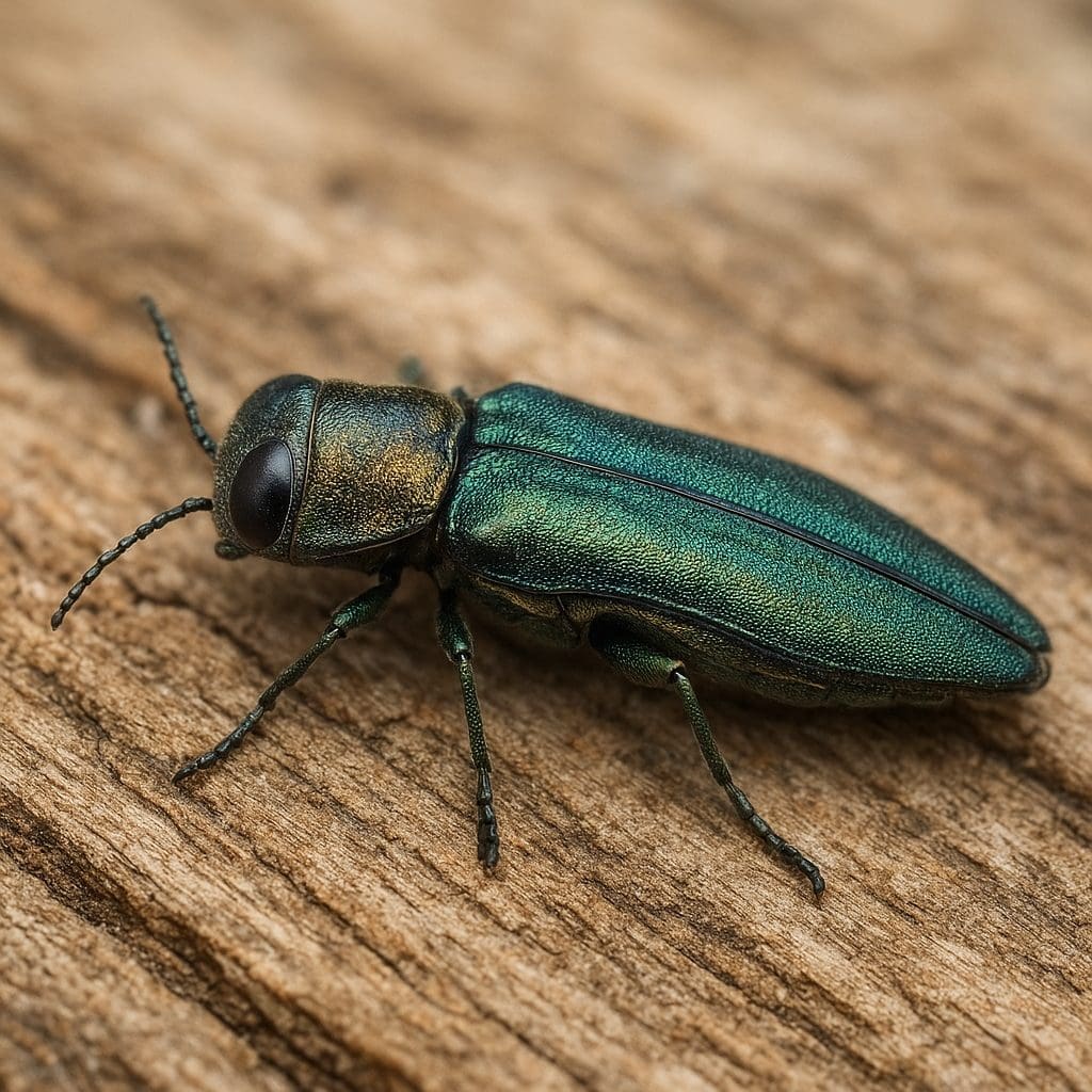 • niewielkie otwory wylotowe na korze — punktowe otwory o średnicy kilku milimetrów to często efekt wylotu dorosłych buprestydów,